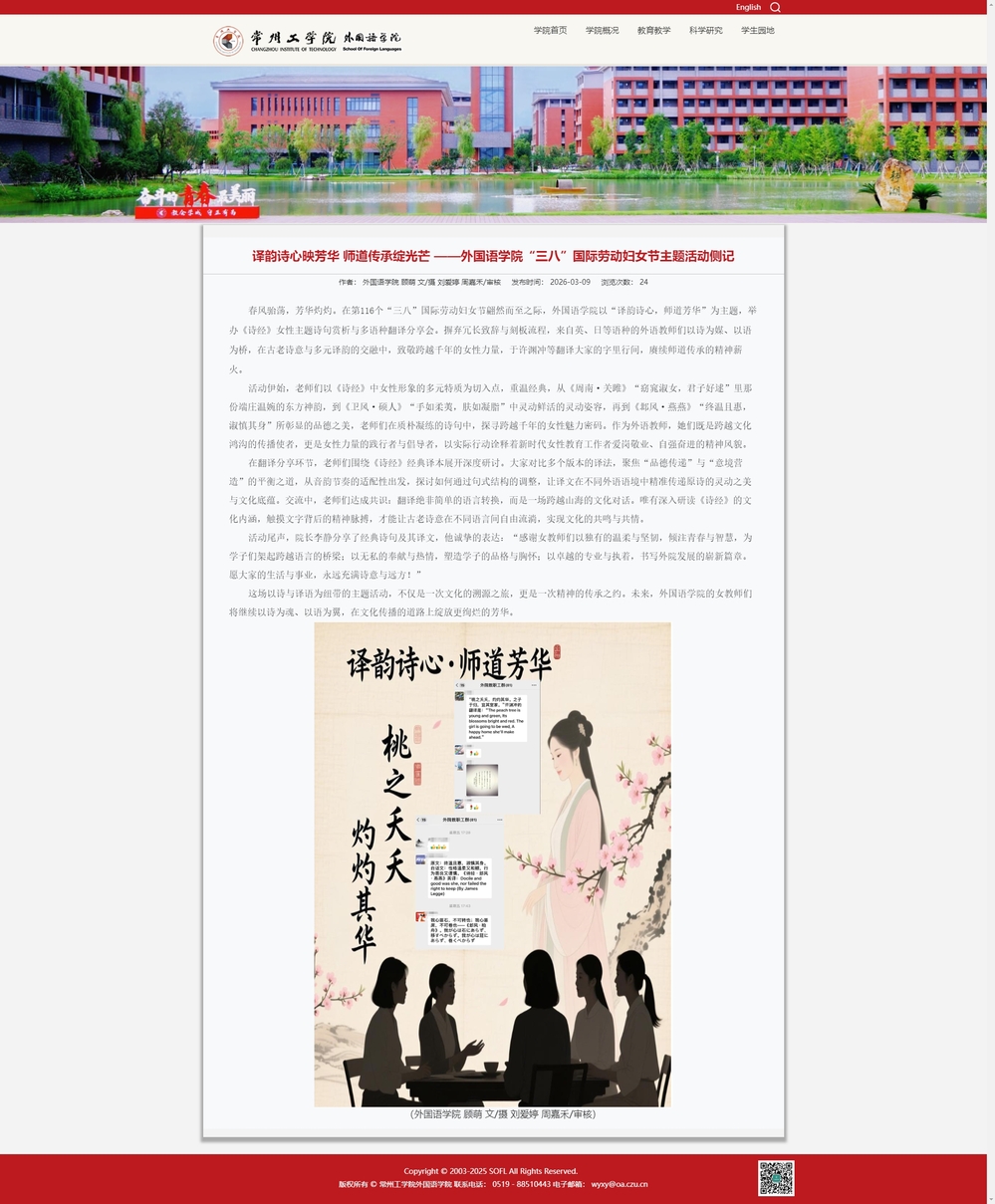 译韵诗心映芳华 师道传承绽光芒 ——外国语学院“三八”国际劳动妇女节主题活动侧记